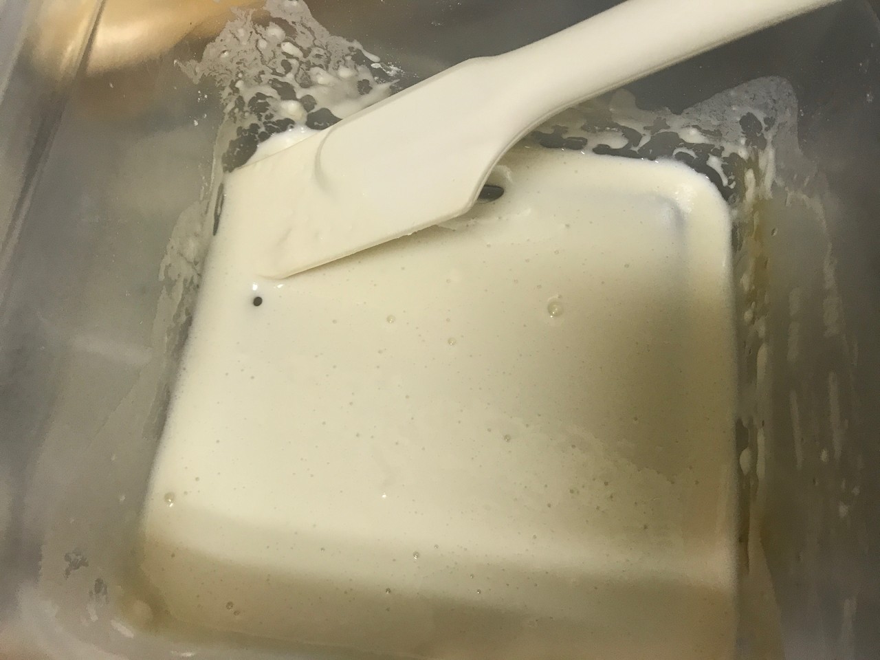 小麦粉を牛乳50ccでダマが残らないようによーく溶いておきます。