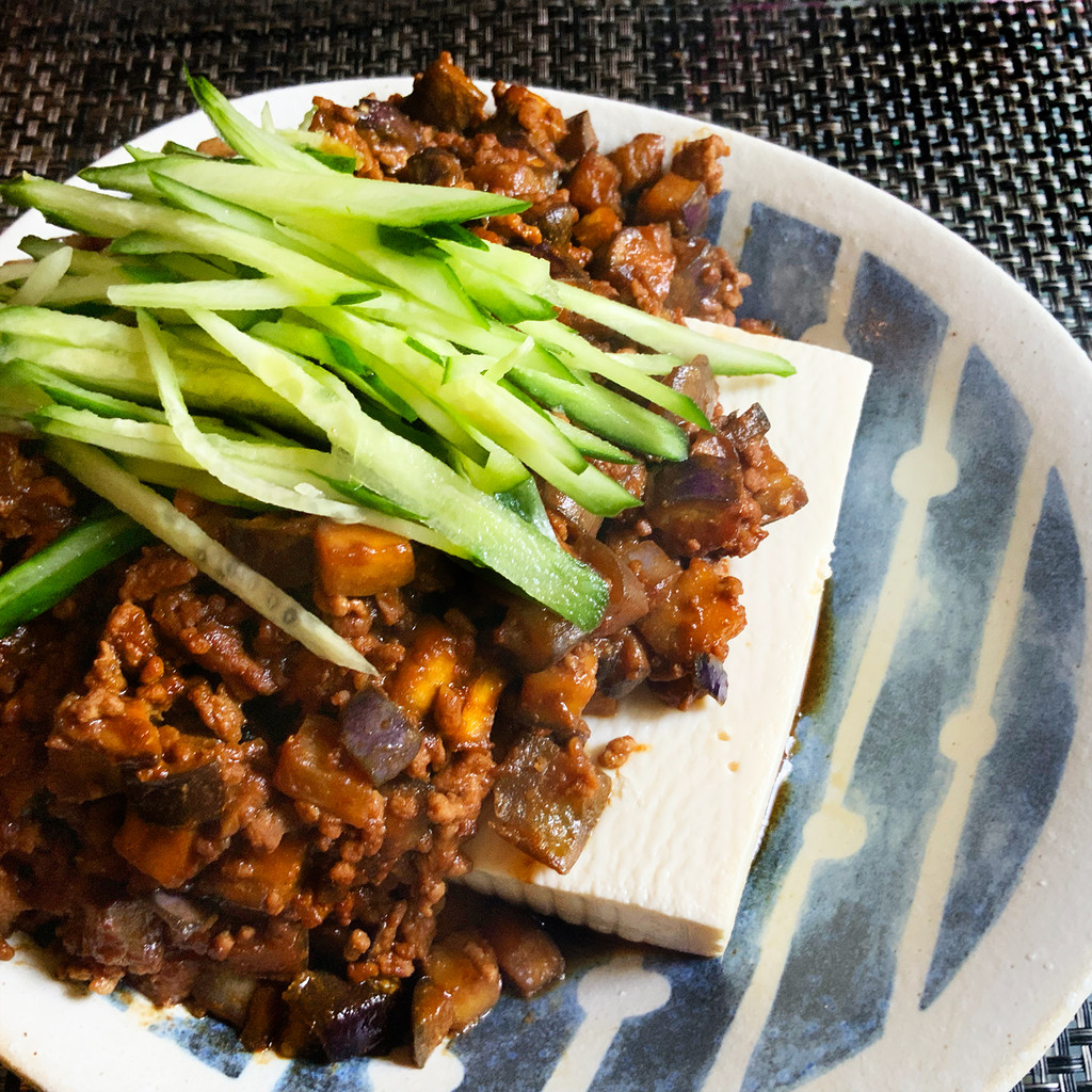 ※写真では豆腐をのぞいて2倍の分量で作っています(ひき肉1パックを使い切りたかったので)。要するに、1丁のお豆腐に対してちょうどいい量が上記の分量だと思います。