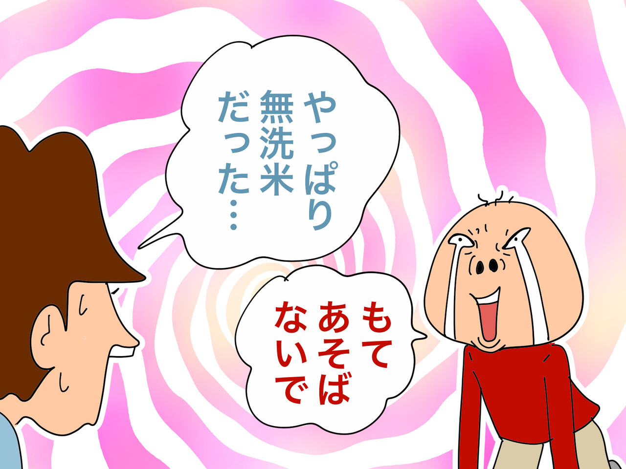 いままで無洗米じゃない米を洗わず炊いて食い、しかもそれに気づかなかった…ということになりました。