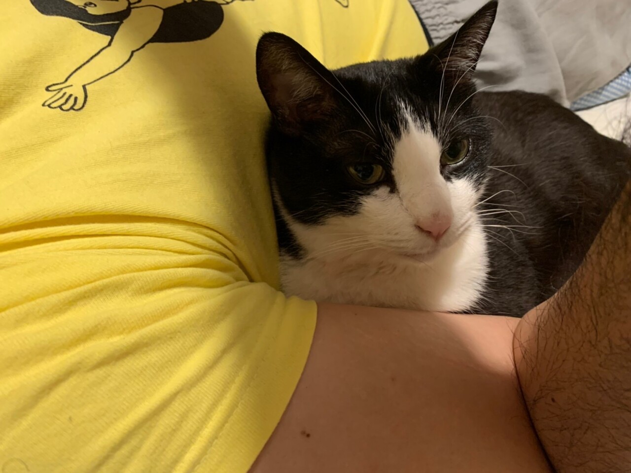 熱帯夜にわきの下を温めに来る、くろ丸です。