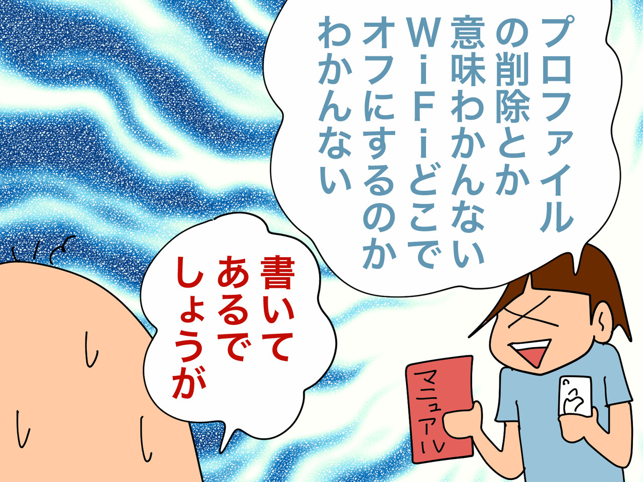 釘を刺しておいたものの、やはりSIMカードやらマニュアルやらが届くと、「僕はITオンチだからムリー」と泣き言を言いはじめる始末。