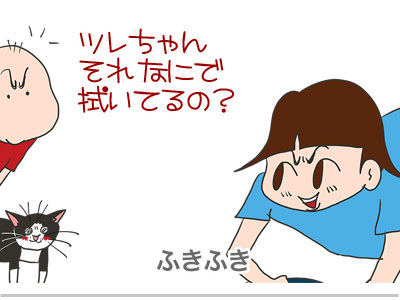 見慣れぬもので床を拭くツレちゃん。