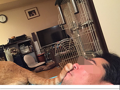 普通食を食べる若ネコたちはケージで食事してもらい、食事中は茶助と隔離するのでが…