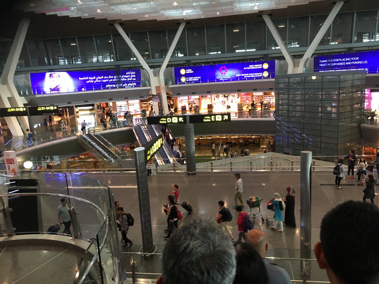 ドーハの電光掲示板は、表示がクルクル変わるので、ゲートがめちゃくちゃ確認しづらく、時間がかかってしまいました。人もまばらなので、誰かに訊ねたりするのも困難でした。